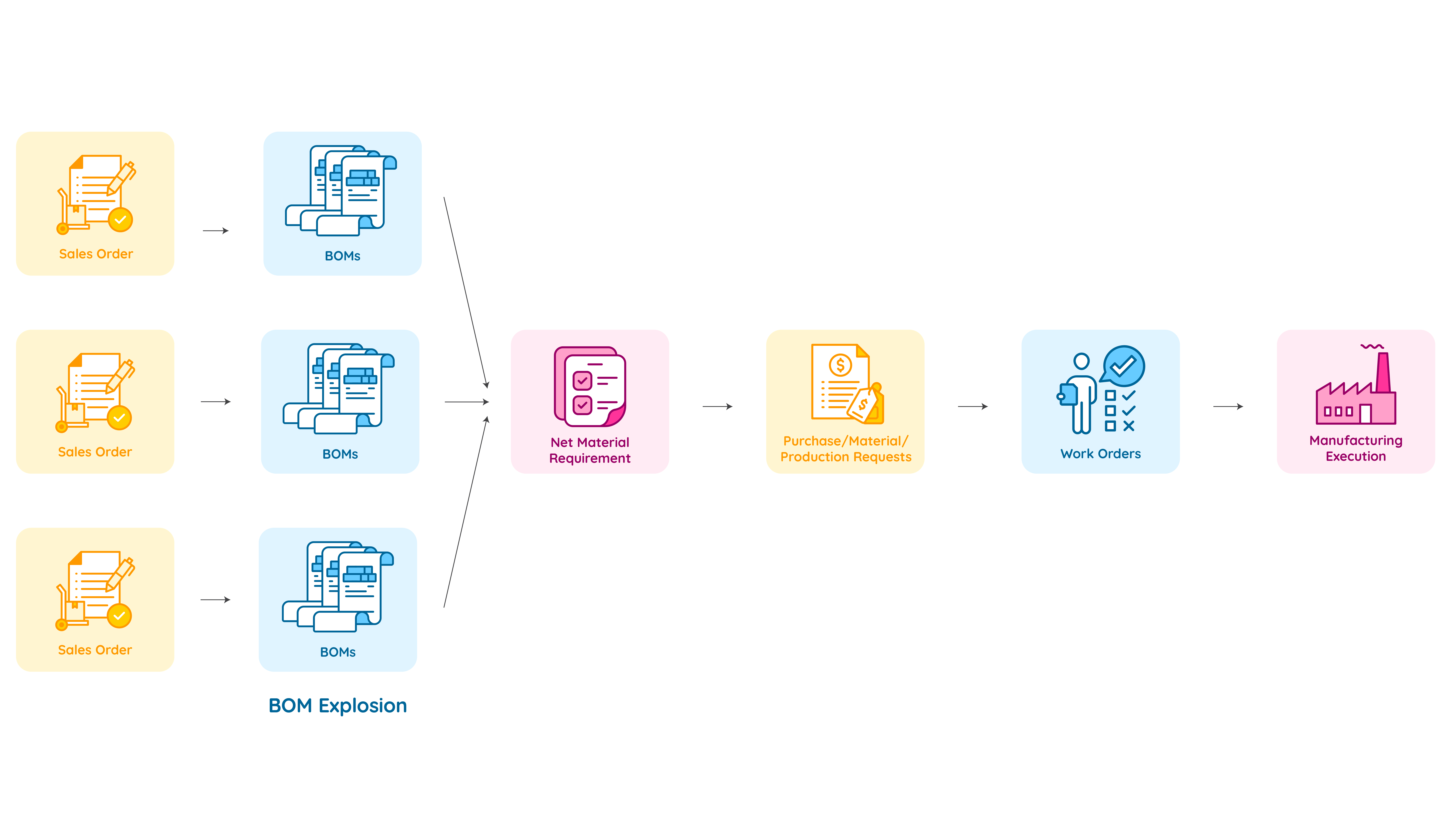 - Automate planning of sub-assemblies and multi-level BOM manufacturing